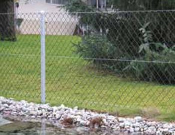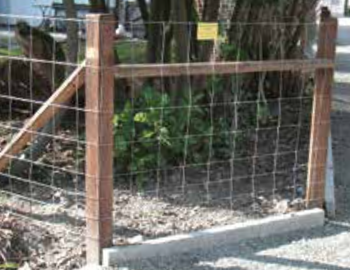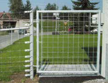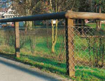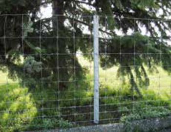 Drahtgeflecht «Ursus» schwer, aus stark verzinkten Drähten, inkl. Drahtspanner montiert auf druckimprägnierten Holzpfosten oder feuerverzinkten Rohrpfosten.