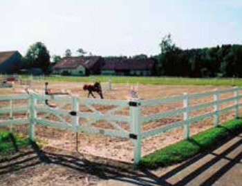 Luxuriöser Pferdezaun mit Pfosten und Planken aus weissem Kunststoff. Ein Zaun, der sich vom Durchschnitt abhebt. Er ist sehr witterungsbeständig und unverrottbar.