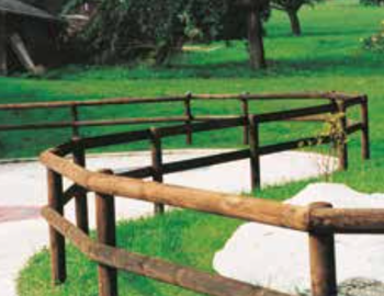 Bestehend aus zwei Halbrundlatten Ø 10 cm angeschlagen an runden oder vierkant Pfosten kesseldruckimprägniert grün oder braun.
