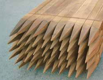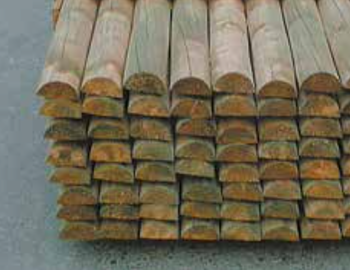 Lärchenholz sägeroh, gefast und gespitzt kesseldruckimprägniert, Farbe braun.
