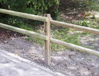Bestehend aus zwei Halbrundlatten Ø 10 cm angeschlagen an runden oder vierkant Pfosten kesseldruckimprägniert grün oder braun.