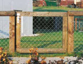 Drahtgeflecht «Ursus» schwer, aus stark verzinkten Drähten, inkl. Drahtspanner montiert auf druckimprägnierten Holzpfosten oder feuerverzinkten Rohrpfosten.