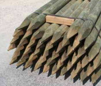Lärchenholz sägeroh, gefast und gespitzt kesseldruckimprägniert, Farbe braun.